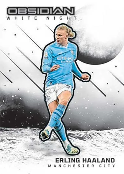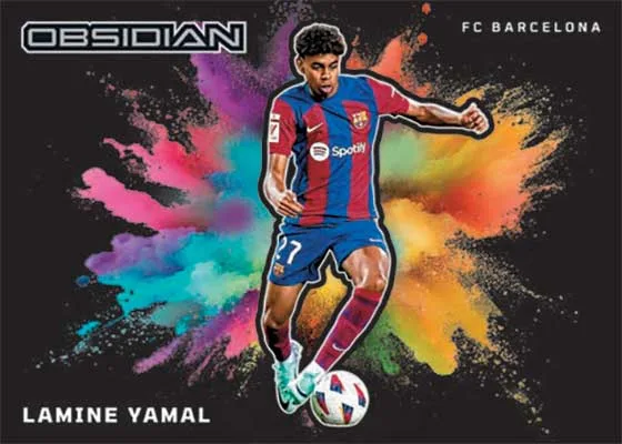 2023-24 Panini Obsidian Soccer sends cards to the dark side — except when there are floods of color. The high-end chromium set brings its trademark black foundation and continues to combine it with hits in bulk. Four of the seven cards in every hobby box are either an autograph or memorabilia card.