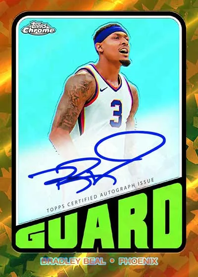 Topps Chrome Autographs add a signature element to the base set. Among the 100 signers is Victor Wembanyama. The Rookie of the Year is a Fanatics exclusive and has not signed any NBA cards for Panini.