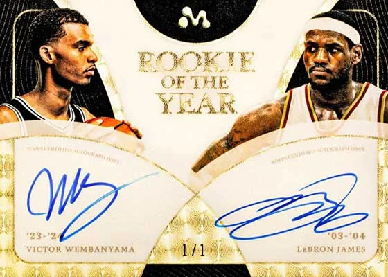 Six different Dual Autographs pair Wembanyama’s signature alongside six other Rookie of the Year winners. Topping the list is LeBron James. Shaquille O’Neal and David Robinson are among the others. The list isn’t limited to just basketball, though. A dual with fellow Fanatics exclusive C.J. Stroud is also on the checklist.
