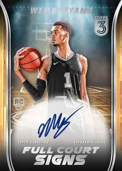 With 95 cards, Full Court Signs is the largest set of autographs on the 2023-24 Topps Three Basketball checklist.