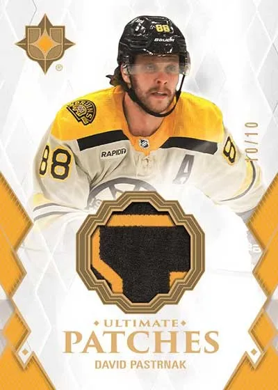 Ultimate Planks is one of the product’s debuts. Versions include Legendary Shield (/49 or 25), Autographs (/10), Legends Autographs (/10), and Original Six Today Autographs (/5). These also have unsigned versions that have no more than 49 copies each.