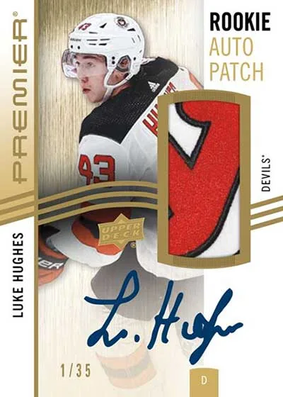 2023-24 Upper Deck Premier Hockey represents one of the sports biggest when it comes to super-premium cards. It’s not quite The Cup, but it is on the elite tier just below it. Four of the six cards in every hobby box are hits: one autographed patch card, another autograph and two memorabilia cards. More than that, the checklist has lots of on-card ink and high-end patch pieces.