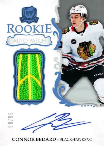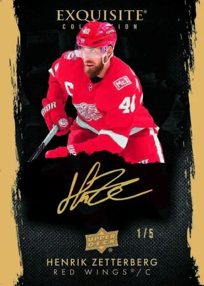 Exquisite rookie cards are numbered corresponding to a player’s jersey number, and those cards feature several parallels, including /25 Horizontal RPAs (with 1/1 Gold parallels) and 1/1 NHL Shield RPAs.