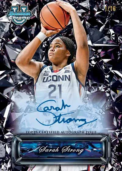 2024-25 Bowman Chrome Sapphire University Basketball leaves Cooper Flagg, Sarah Strong, Dylan Harper and dozens of other collegiate standouts looking blue. A souped up and slimmed down version of the main Bowman Chrome University set, the checklist includes exclusive parallels and limited edition inserts.