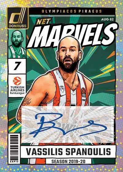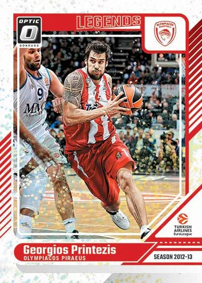 2024-25 Donruss Turkish Airlines EuroLeague Basketball takes a flagship approach to international basketball. A sizeable base set, lots of inserts and some chase components come together with a checklist that covers the past and present of the league.