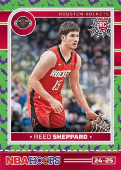 Each pack includes three cards from the 2024-25 Hoops set, and one of those cards will be an exclusive parallel that draws on a Halloween theme. Boxes have 40 packs.