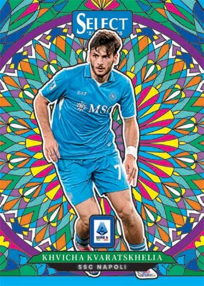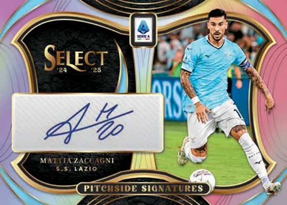 2024-25 Panini Select Serie A represents some of the more colorful cards of the season for the Italian soccer league. The chrome release offers a distinct base set structure, lots of parallels along with an assortment of other inserts.