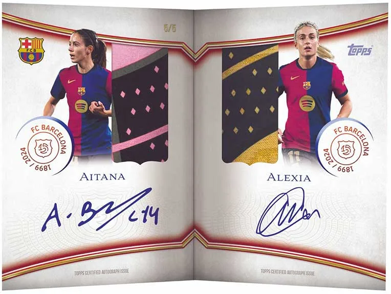 2024-25 Topps FC Barcelona 125th Anniversary digs into the past and present of one of the most storied franchises in all of sport. Players, major moments and even the club’s home stadium all take the spotlight on the checklist that incorporates a base set, a handful of inserts and lots of autographs and memorabilia cards.