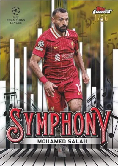 Impactful and colorful designs continue with the inserts, which range from common finds to extremely rare treasures. Two new inserts are Finest Skillset (1:3 packs) and Finest Symphony (1:3), and returning are Top of the World (1:3) and Prized Footballers (1:2). All four inserts are covered by an array of Refractors.