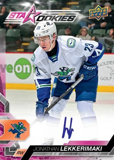 Three additional insert sets are a part of the checklist. Bound for Stardom (1:2 packs) put a spotlight on the AHL’s top prospects. Tendys (1:4 packs) are all about goalies. Finally, there’s Two-Way Play (1:5 packs).