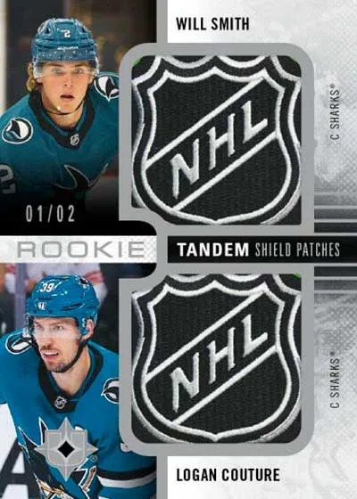 More young talent is available in Ultimate Rookie Signatures (1:8 packs), numbered Rookie Signature Premium Materials and Debut Threads, and Rookie Tandem Shield Patches (/2).