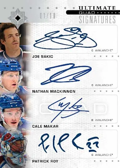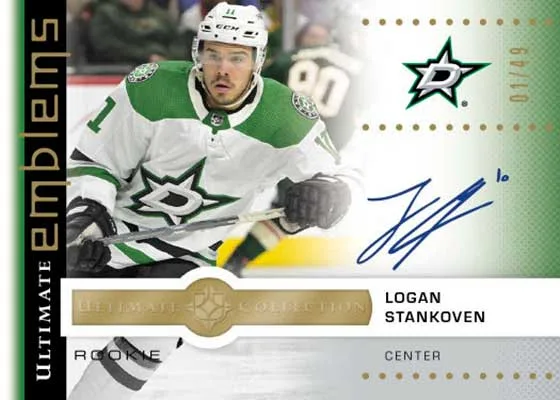 Ultimate Emblems come with a piece of engraved metal. Autographs are 1:8 packs for veterans and legends while rookies are 1:5. Gold and Platinum versions are available as well.