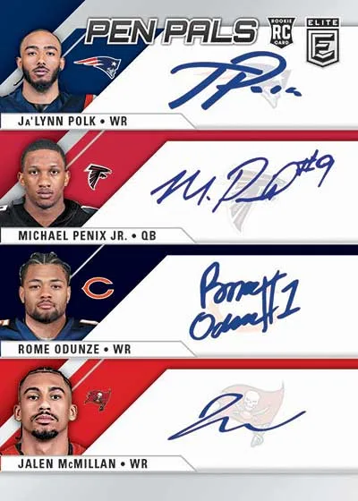 Something else that’s back is Pen Pals. These popular inserts are among rookies’ first on-card NFL autograph cards.