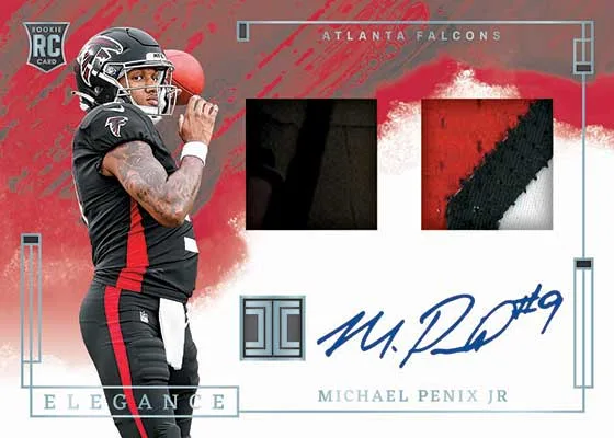 In a hobby filled with flash, 2024 Panini Impeccable Football takes a more subdued approach. The super premium line is pretty much all autographs and memorabilia but it presents them in such a way that they stand out from the design elements that are present. Splashes of color can be found throughout the various designs but they’re balanced by white space.