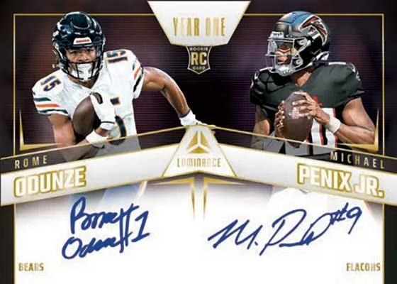 2024 Panini Luminance Football offers snapshots of present and future stars with an eye for photography. The early season release is also notable for having some of the first on-card NFL autographs from many members of the 2024 rookie class.
