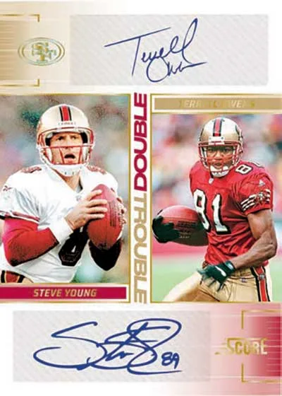 Double Trouble has various NFL tandems and pairings, adding a dual autograph element to the checklist.