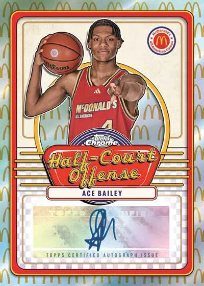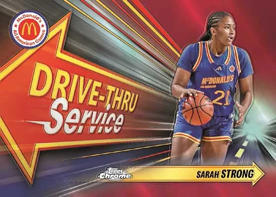 2024 Topps Chrome McDonald’s All American Basketball is a prospect-driven release that puts the spotlight on some of the game’s top young talent. The checklist features a lot of familiar elements when it comes to Chrome. It also leans more into fast food themes to go with the program’s sponsor.
