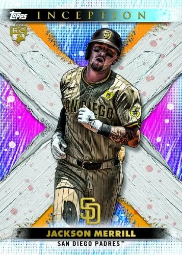 2024 Topps Inception Baseball cards put many of baseball’s brightest young stars under the spotlight while still mixing in your favorite veterans and several legends of the game. Topps ties everything together with a thrilling artistic design, giving these cards a museum-quality look and feel.