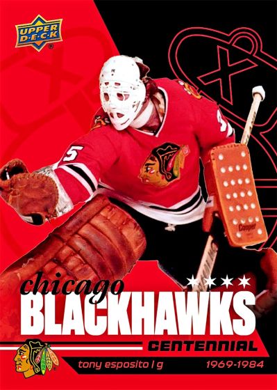 The base set features 200 cards that trace the story of the Chicago Blackhawks from their founding on May 1, 1926, through a century of NHL action. The first 100 cards follow a traditional base format, while the remaining 100 cards are organized into several themed subsets that further spotlight the team’s legacy, stars, and milestones.