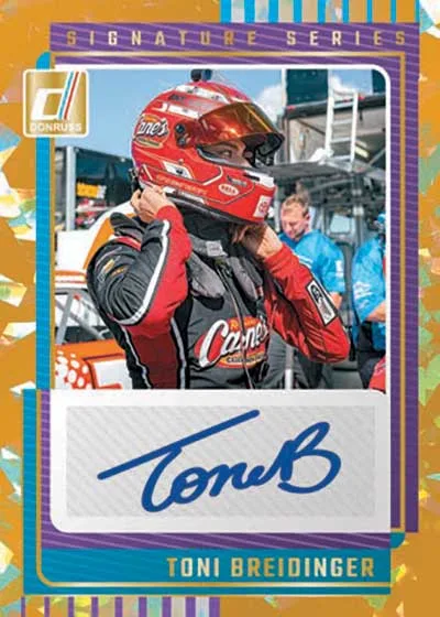 2025 Donruss NASCAR racing can be viewed as the sport’s flagship release. Moderately priced and with a large and varied checklist, there’s something for virtually all types of collectors. This includes autographs and memorabilia cards, which combine to land three per hobby box.