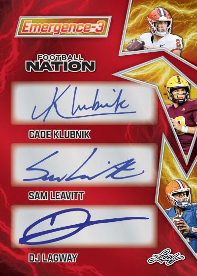With its all-1/1 base concept structure, deep autograph content, and multi-signed case hits, 2025 Leaf Football Nation is geared toward collectors who prioritize scarcity and unique cards across every level of the football landscape.