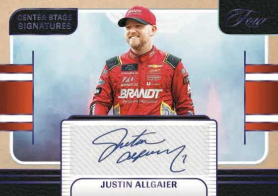 Now, the focus shifts to the asphalt, and you guessed it, collectors get four cards in every box of this debut product – two encased autographs, one encased memorabilia card, and either a base card, parallel, or insert.