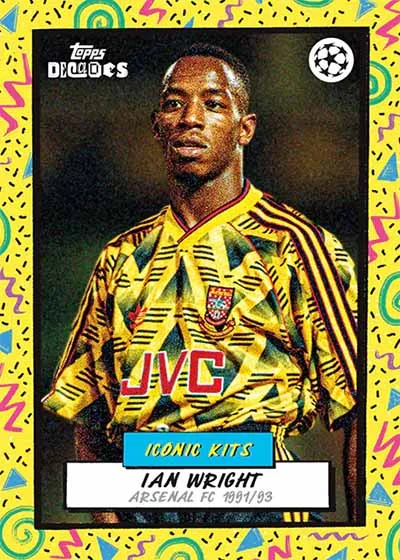 2025 Topps Decades 1990s UEFA Club Competitions channels the colorful trends and players that helped shaped the century’s end.